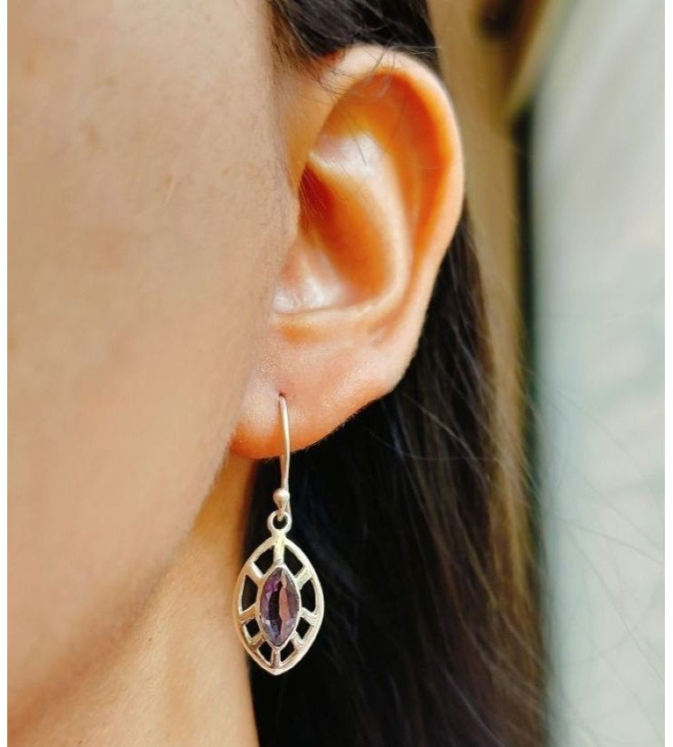Elevate your style with our stunning Amethyst Hanging Earrings, featuring beautiful marquise-shaped amethyst stones set in 92.5 sterling silver with a halo design. This elegant piece is perfect for adding a touch of luxury to your look.