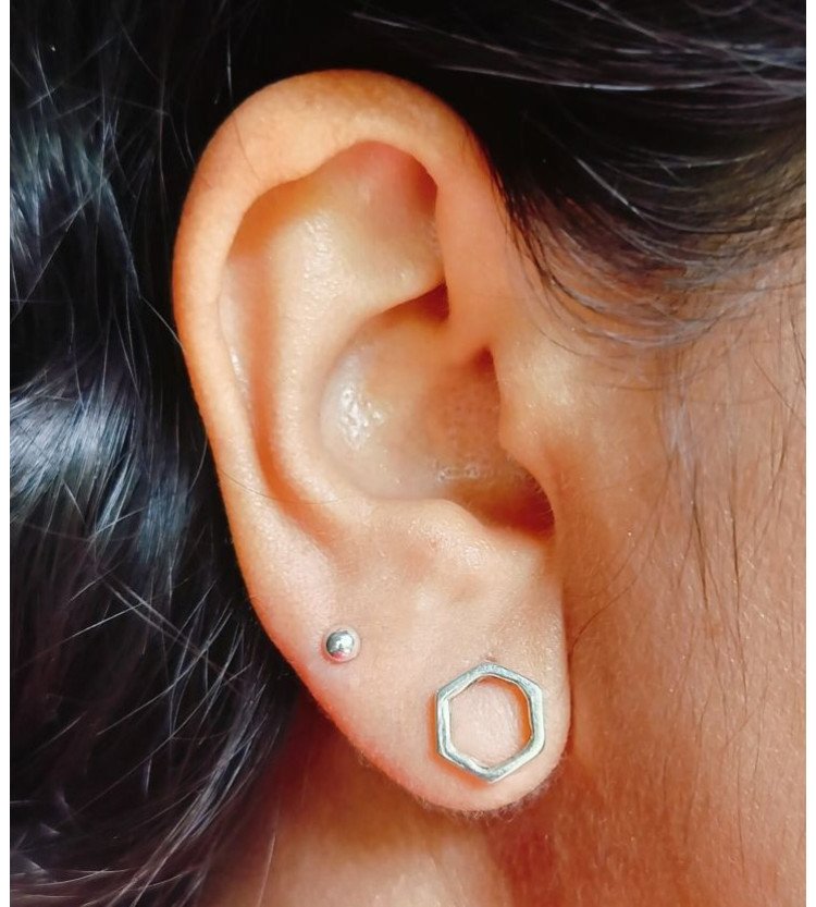 Geometric charm in a tiny package! Our Minimal Hexagon Studs, crafted in 925 sterling silver, are perfect for adding a touch of charm to any outfit. Priced at ₹800, these studs are a lovely accessory and perfect for daily wear.