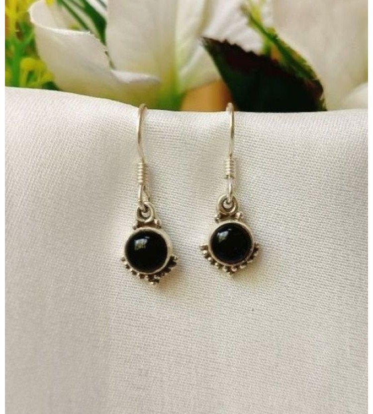 Elevate your style with our stunning Black Onyx Hanging Earrings, featuring beautiful cabochon black onyx stones set in 92.5 sterling silver with a minimalist yet traditional design. This understated piece is perfect for adding a touch of elegance to your look.
