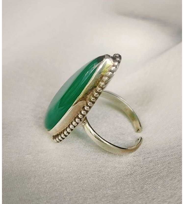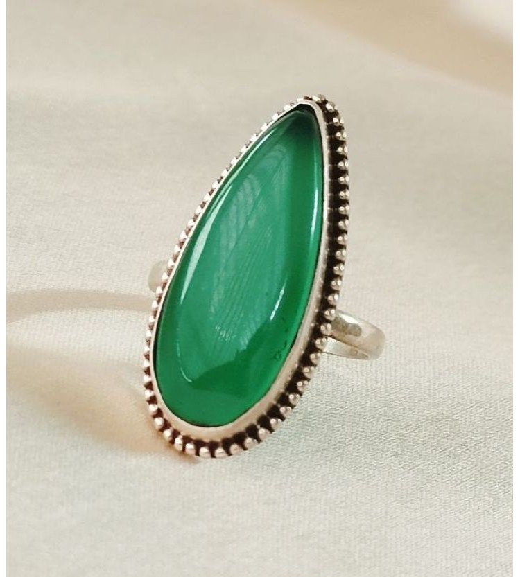 Elevate your style with our stunning Adjustable Green Onyx Ring. This elegant piece features an almond-shaped elongated green onyx stone set in 92.5 sterling silver, perfect for everyday wear.