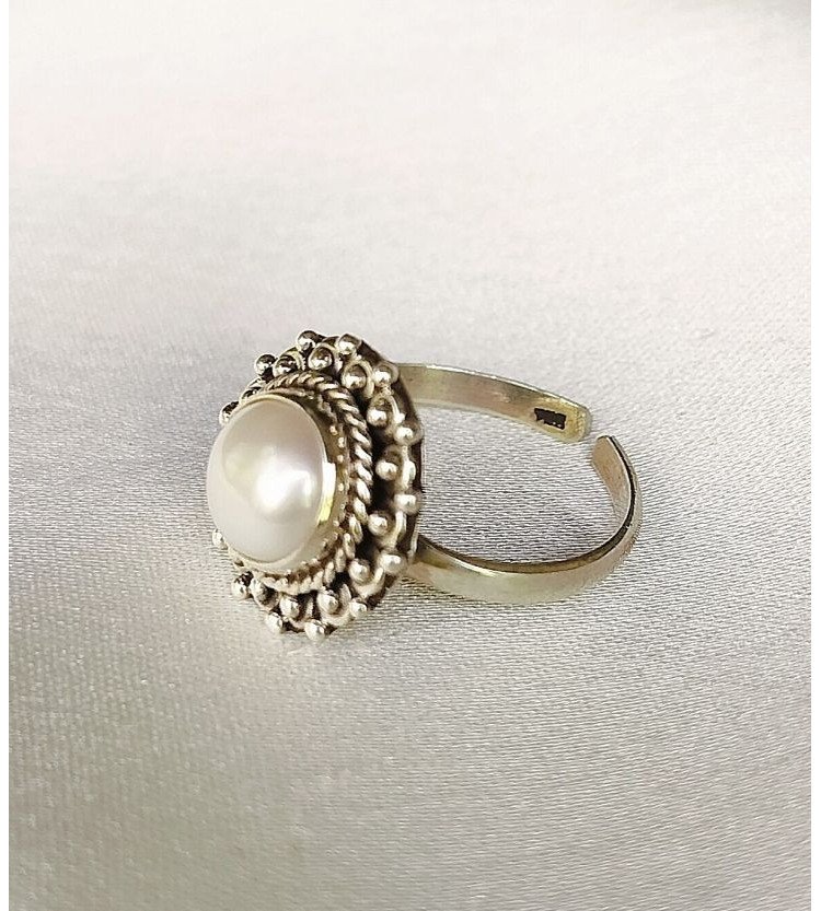 Adjustable Pearl Round bezel ring