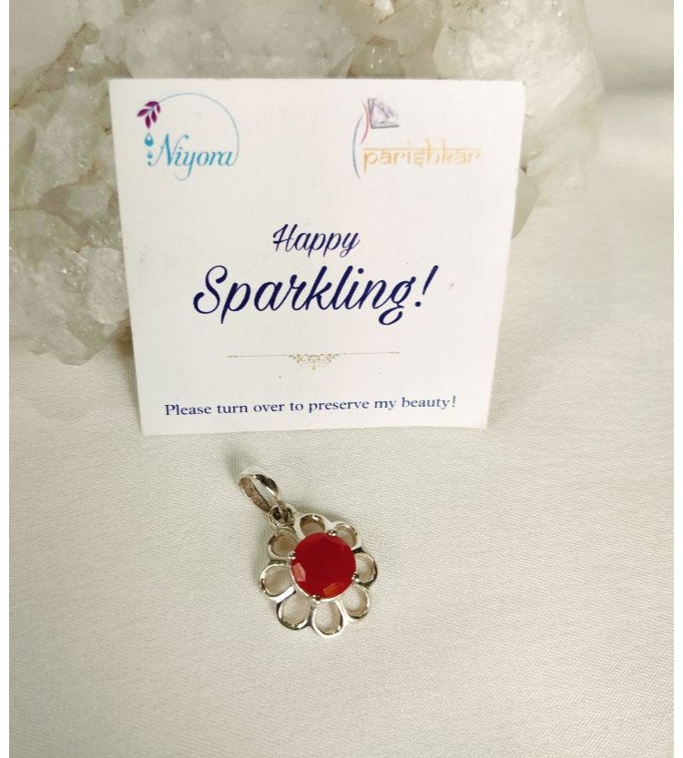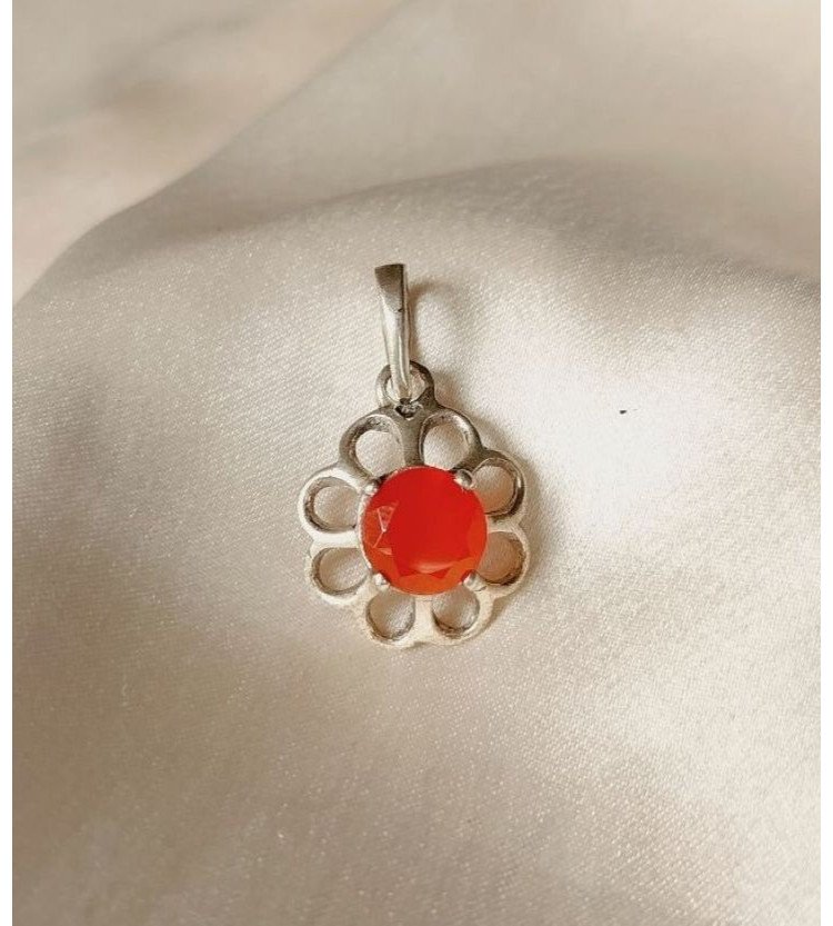 Elevate your style with our stunning Carnelian Pendant, featuring a vibrant orange carnelian stone set in 92.5 sterling silver with a beautiful floral design. This elegant piece is perfect for adding a touch of warmth to your look.