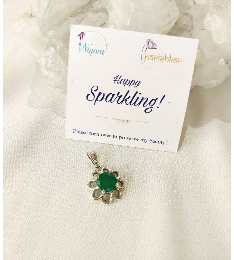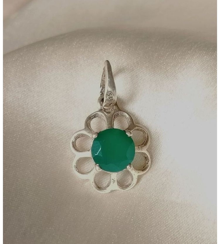 Elevate your style with our stunning Green Onyx Pendant, featuring a beautiful green onyx stone set in 92.5 sterling silver with a beautiful floral design. This elegant piece is perfect for adding a touch of nature to your look.