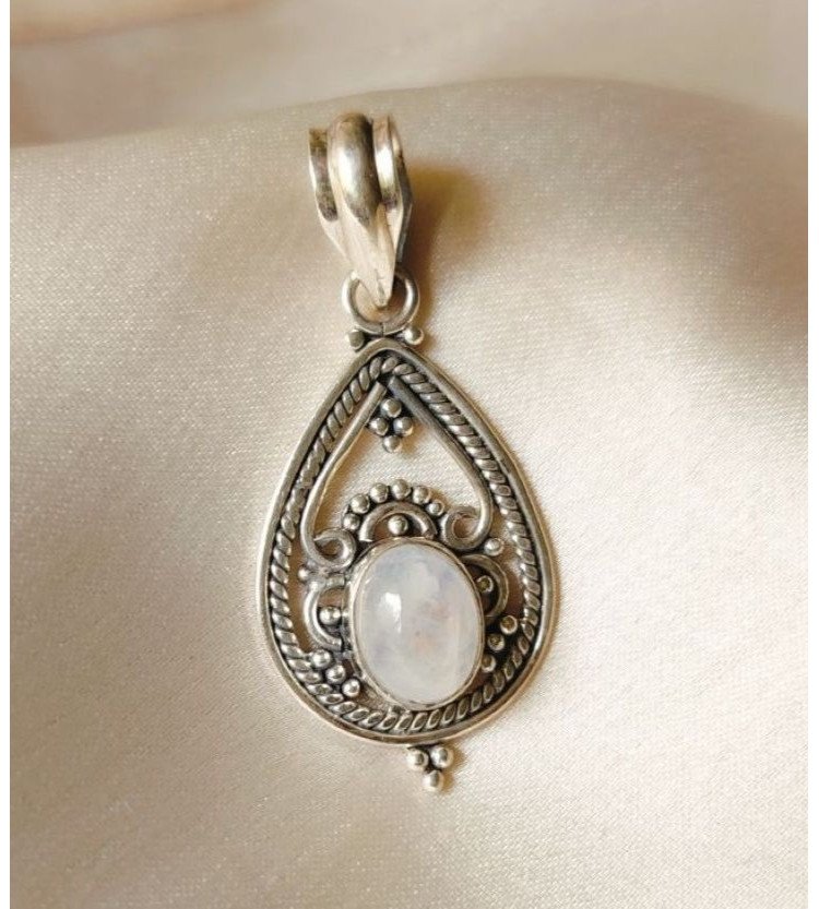 925 Silver Rainbow Moonstone Drop filigree pendant
