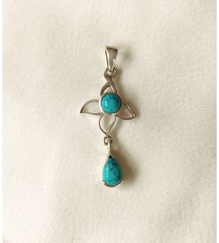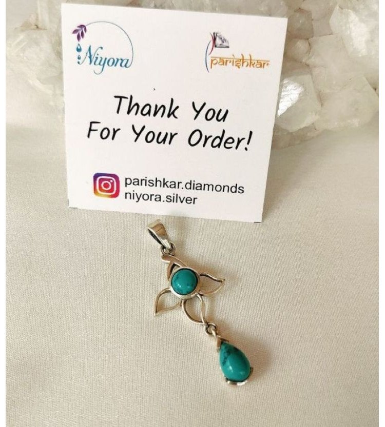 Elevate your style with our stunning Turquoise Pendant, featuring a beautiful turquoise stone set in 92.5 sterling silver with a delicate floral drop design. This elegant piece is perfect for adding a touch of serenity to your look.